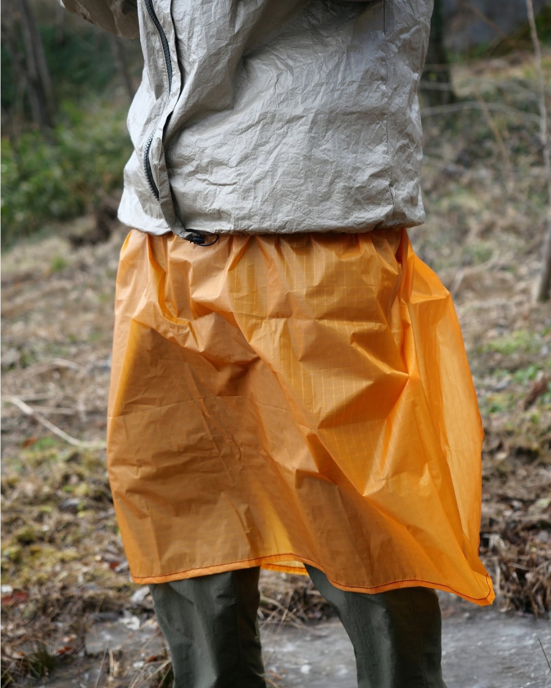 森林限界以下の雨天時の山行や、レインパンツの代替として。